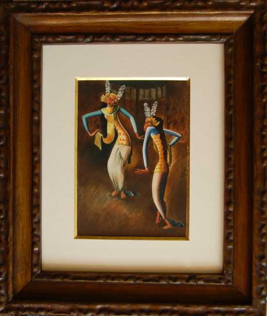 A second version of the Sanur painting was included in his book as a colour plate. Modelled on the current work, the adaptation maintains most of the essential features despite a change to the face and head-dress of the girl.